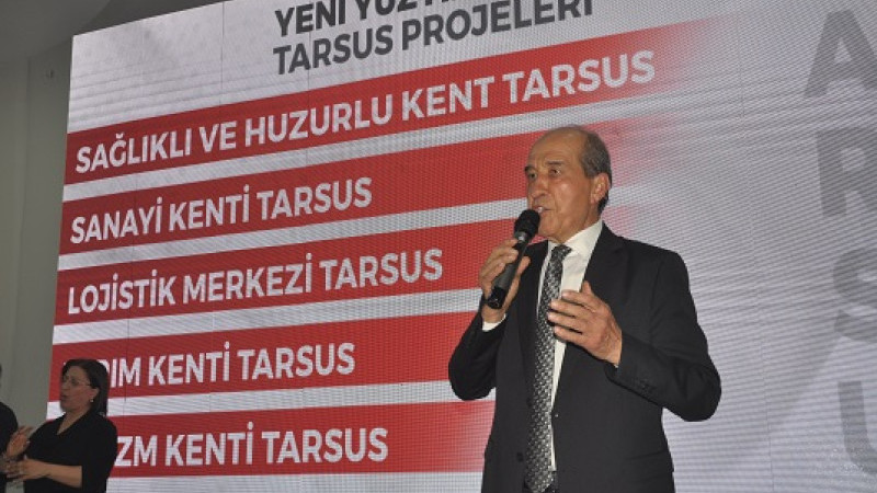 Tat, “Tarsus, tarım, Tarsus Turizm, Tarsus Sanayi Kenti, Tarsus’a Sağlıklı, Huzurlu, Yeşil ve Çevre dostu bir kent haline getirebilmek adında başta sağlıklı yapılarla kentsel dönüşümü, yerinde dönüşümle hayata geçireceğiz. Ucuz ve sağlam konutlar üreteceğiz. Tarsus’u yüzyılın çağdaş kenti yapacağız. ‘Çalışan Tarsus, Türkiye’ye yeter’ mottosuyla Tarsus’umuzu Türkiye’nin en gelişmiş sanayi kenti yapacağız. Çukurova’nın en geniş arazilerinin bulunduğu Tarsus’un tarihteki konumuna, tarihi miraslarımıza, kültür miraslarımıza sahip çıkacağız. Tarsus’u İnanç ve Kültür Merkezi haline getireceğiz. Dahası Tarsus’u denizle buluşturacağız. Projelerimiz hazır. Tarsus’a hayatın her alanında kalkınmasına olanak sağlayacak tüm projelerimizle geliyoruz” diyerek, “Birliğin gücüyle ayırdamadan, ayrıştırmadan, AK Parti ve Milliyetçi Hareket Partisi olarak oluşturduğumuz güçbirliği ile 31 Mart Pazar günü yapılacak seçimlerden zaferle çıkacağız” şeklinde konuştu.