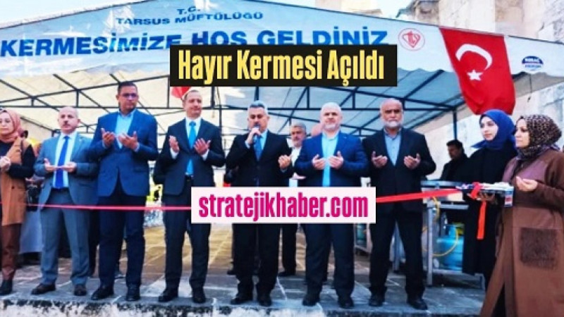 Tarsus Müftülüğü ve Türkiye Diyanet Vakfı Tarsus Şubesi tarafından organize edilen ve 3 gün açık kalacak olan Hayır Çarşısı Kermesi'nin açılışına Kaymakam Mehmet Ali Akyüz'ün yanı sıra Belediye Başkan yardımcısı Muzaffer Akkılıç, Müftü Murat Akçay, Müftülük personeli ve vatandaşlar katıldı.